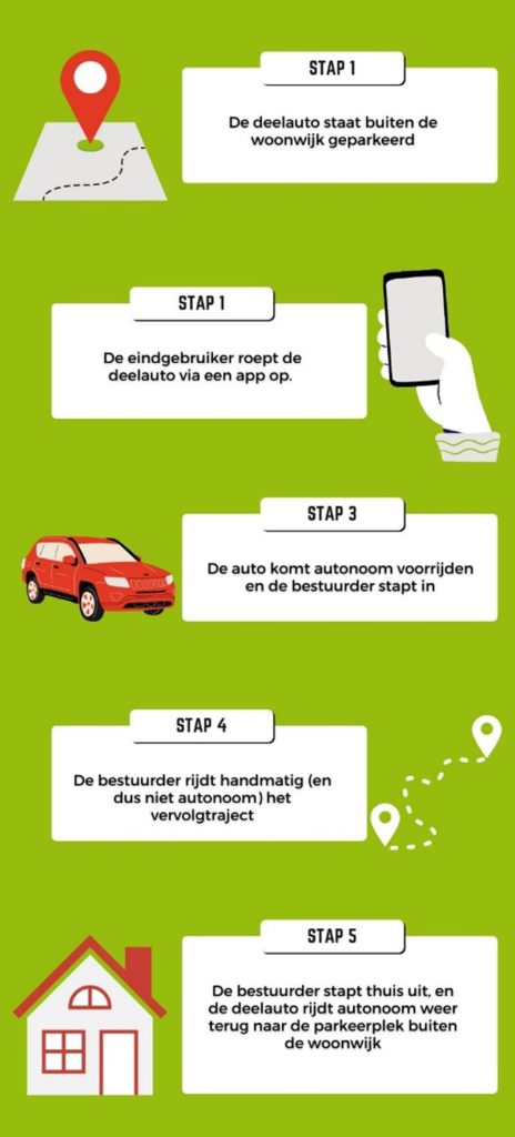 Toekomstmuziek! Of toch niet? Een deelauto zónder bestuurder rijdt je straat in en parkeert soepeltjes in een parkeervak. Zo kun jij rustig instappen en je weg vervolgen. Alsof het de normaalste zaak van de wereld is. Zie je het al voor je?